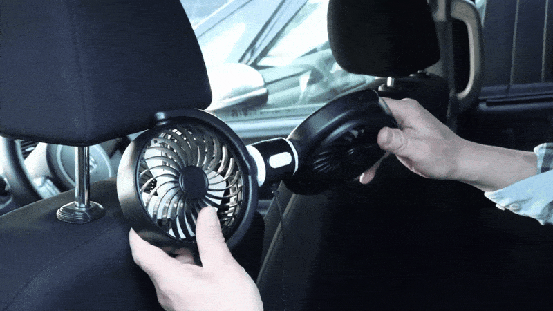 USB電源でヘッドレストにワンタッチ取り付けが可能で上下左右に360°好きな向きに調整できる2025年最新版扇風機!