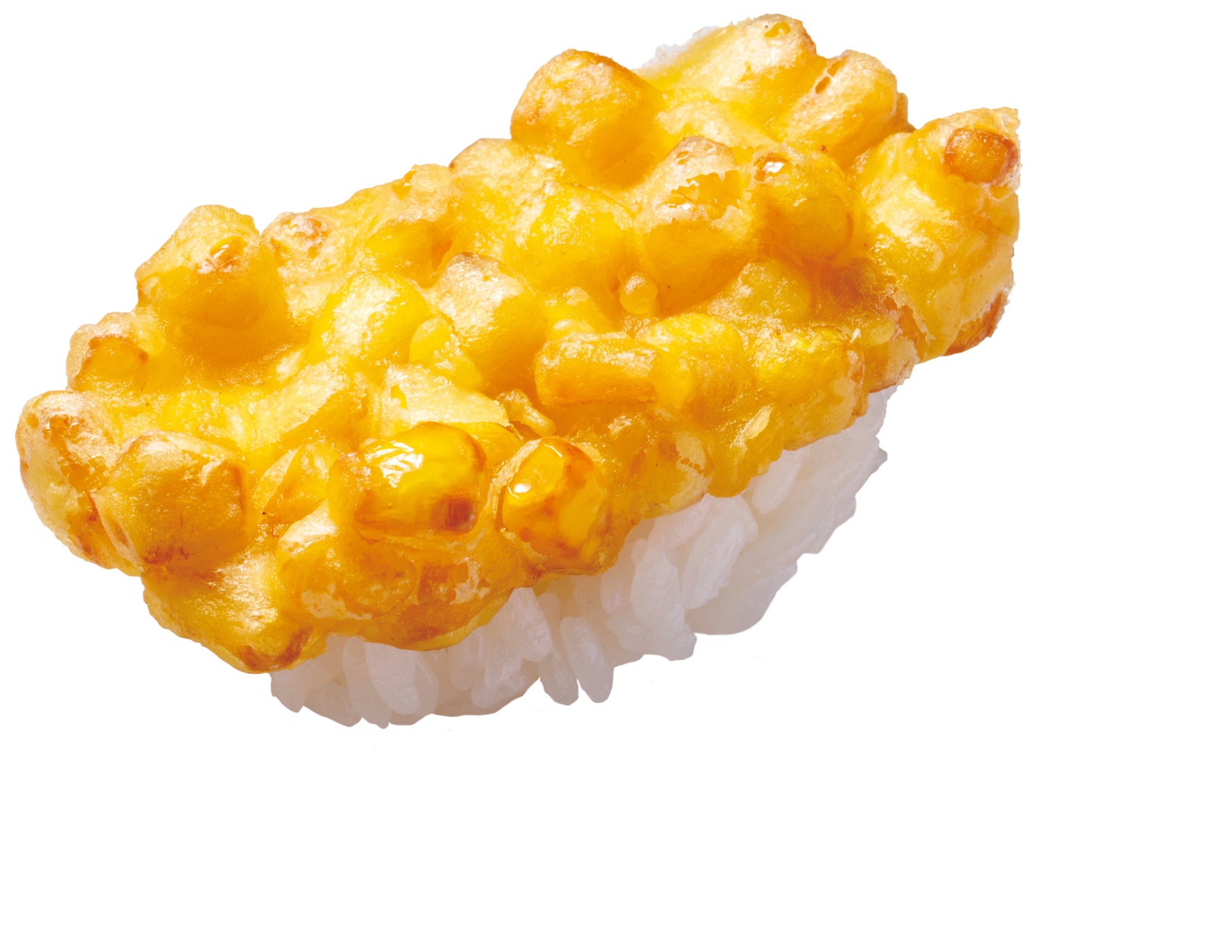 本フェアでは、大葉の爽やかな風味とニンニクの香りが旨みを引き立てる「直火焼きまぐろ(大葉にんにく風味)」をはじめ、上品な甘みで食感のよい「姿やりいか」、サクサクの衣とコーンの粒感がクセになる「コーンの天ぷら握り」を100円(税込110円)でご提供します。「コーンの天ぷら握り」は、卓上の“九州風さしみ醤油”をかけると、焼きトウモロコシのような味わいをお楽しみいただける、夏らしい一皿です。