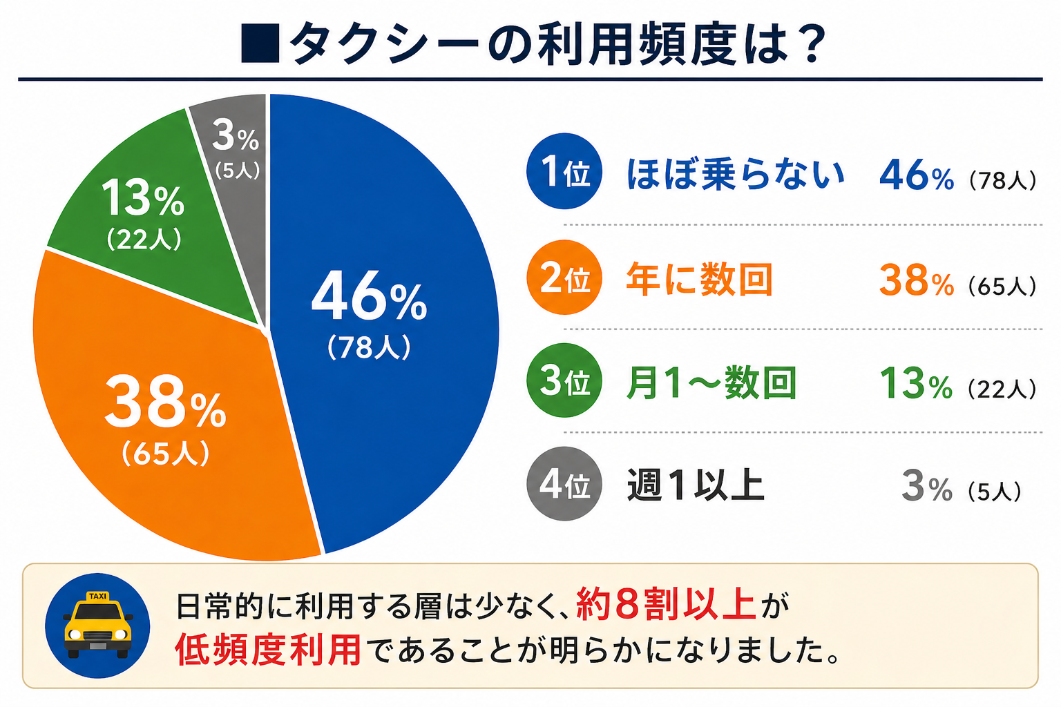 今回の調査では、タクシー料金値上げに対し「理解はあるが負担が大きい」というユーザー心理が明確に示されました。特に、もともと利用頻度が低い層が多い中での値上げは、さらなる利用減少を招く可能性があります。