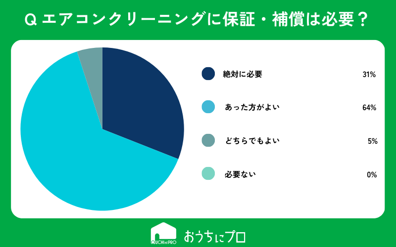 エアコンクリーニングへの保証は95%が必要だと感じている。