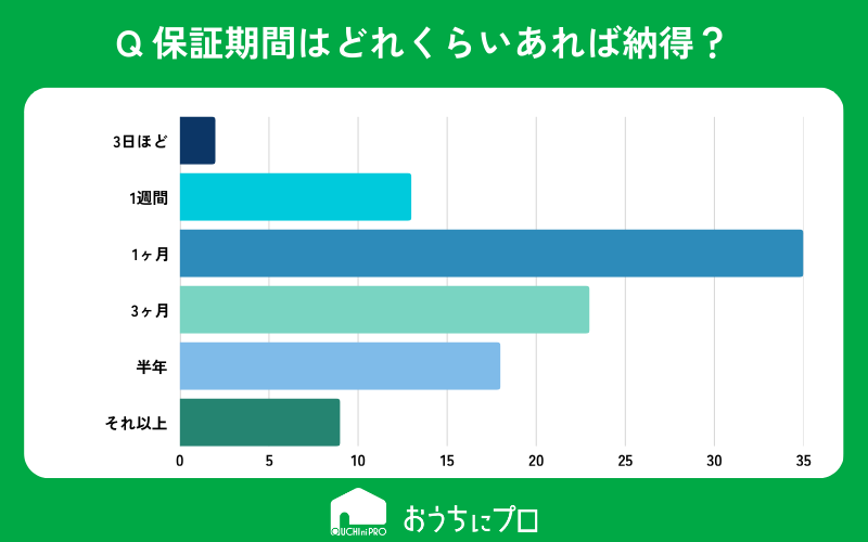 保証期間については1ヶ月ほどは欲しいと考える人が最も多い。