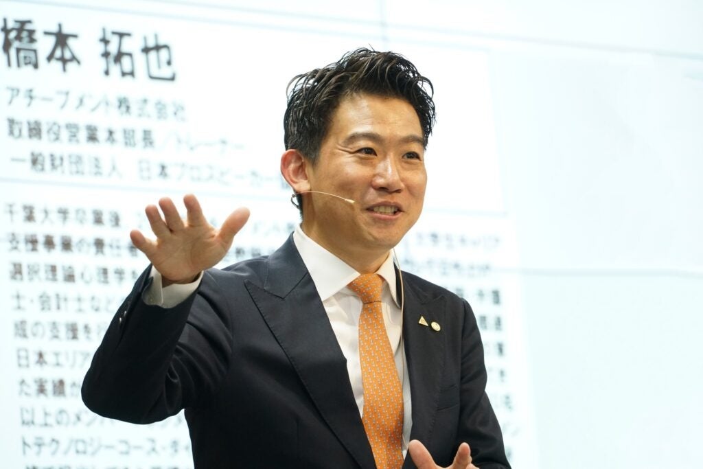 また橋本は企業経営者や管理職、ビジネスパーソンらが年間1.8万名以上が受講するアチーブメント株式会社『頂点への道』講座シリーズのメイン講師を務め、これまで各種研修で累計2万名の方の人材教育に携わってきました。