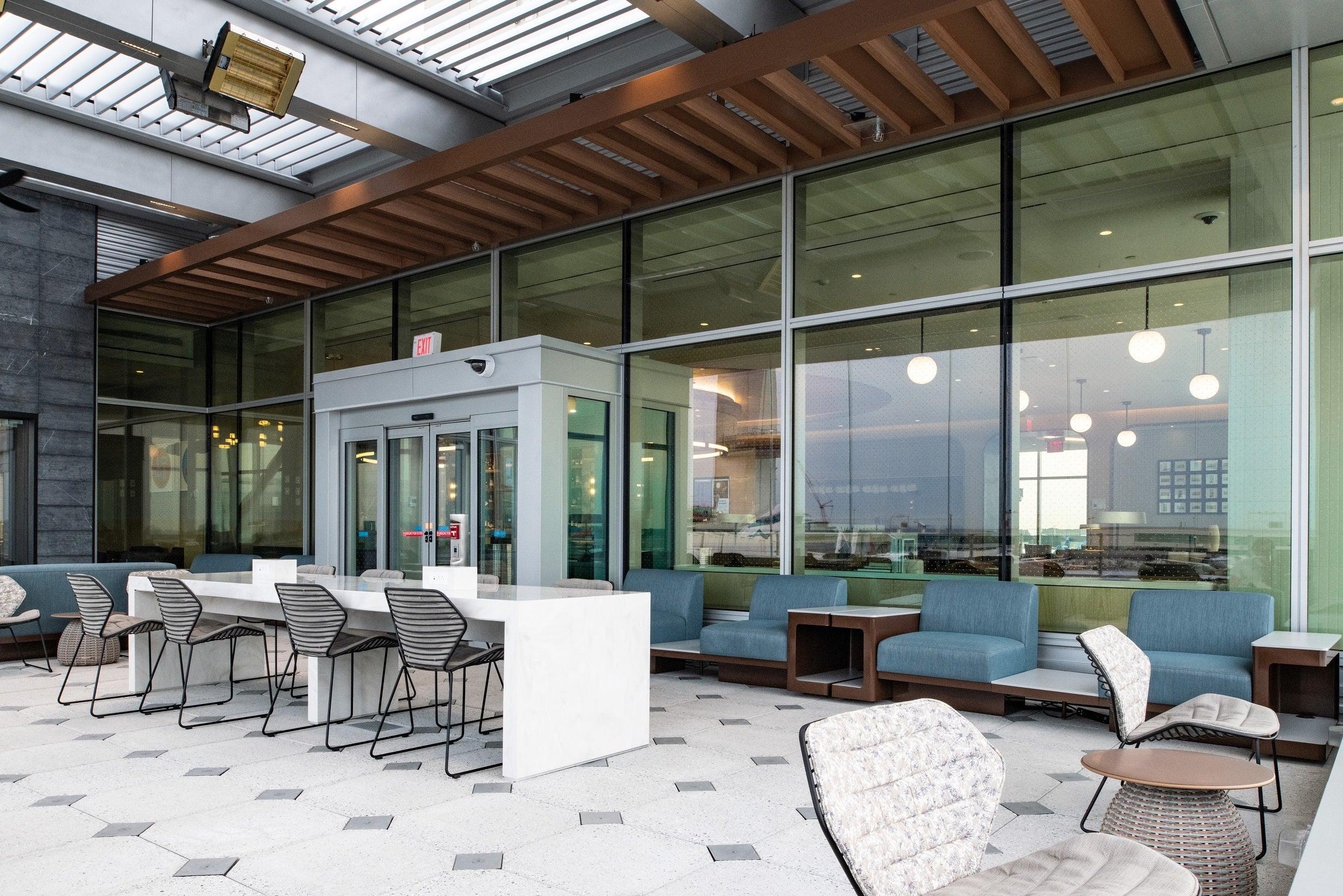敷地面積は約1,300平方メートルで、250人以上のお客様を収容でき、屋根付きの屋外デッキ「スカイデッキ」を備えています。第4ターミナルのコンコースBにあるデルタ スカイクラブと合わせると、一度に800人以上のお客様にラウンジをご利用いただくことができます。