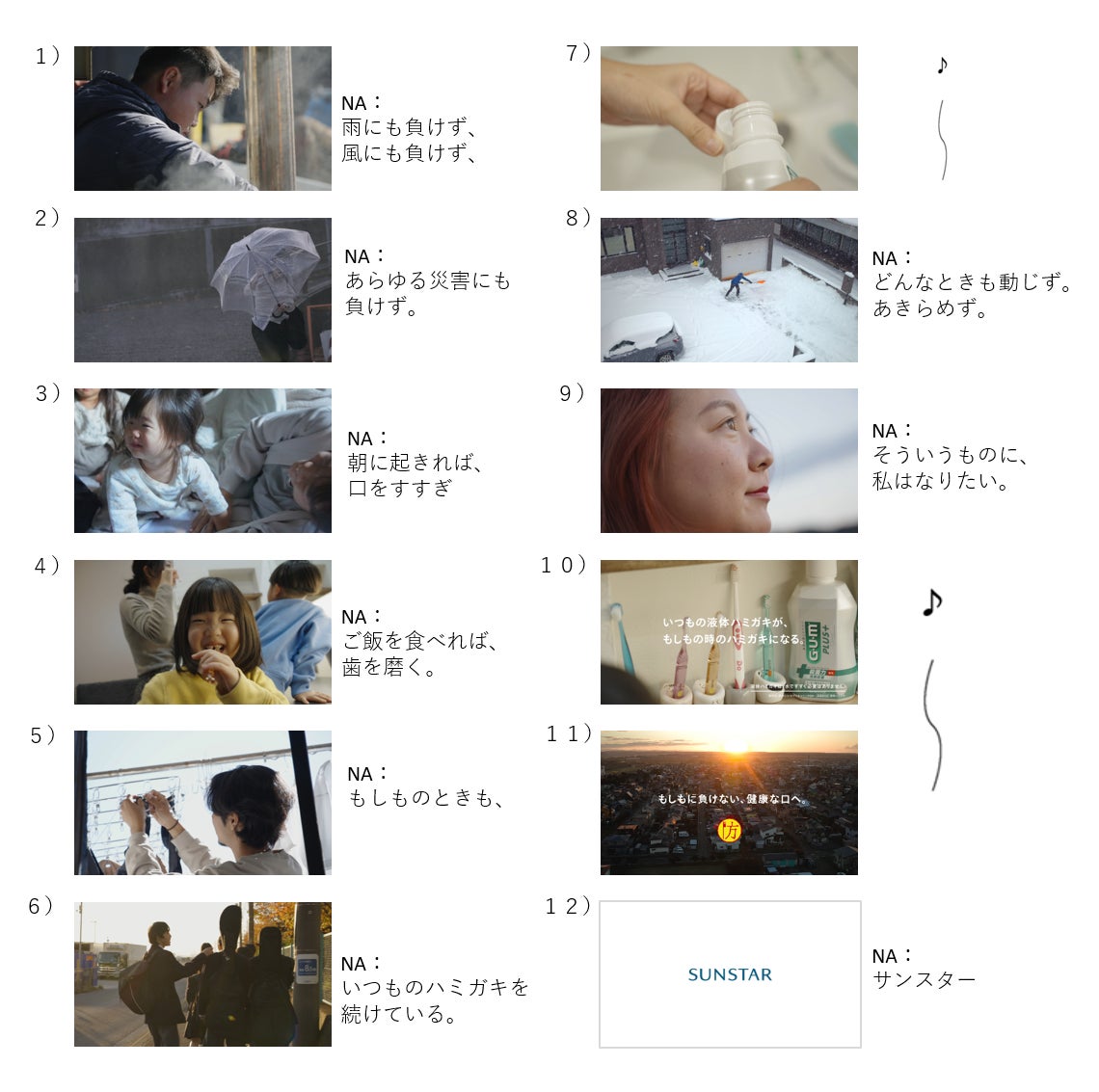 ■サンスター新企業CM「防災にオーラルケア 雨ニモマケズ」篇 30秒 ストーリーボード