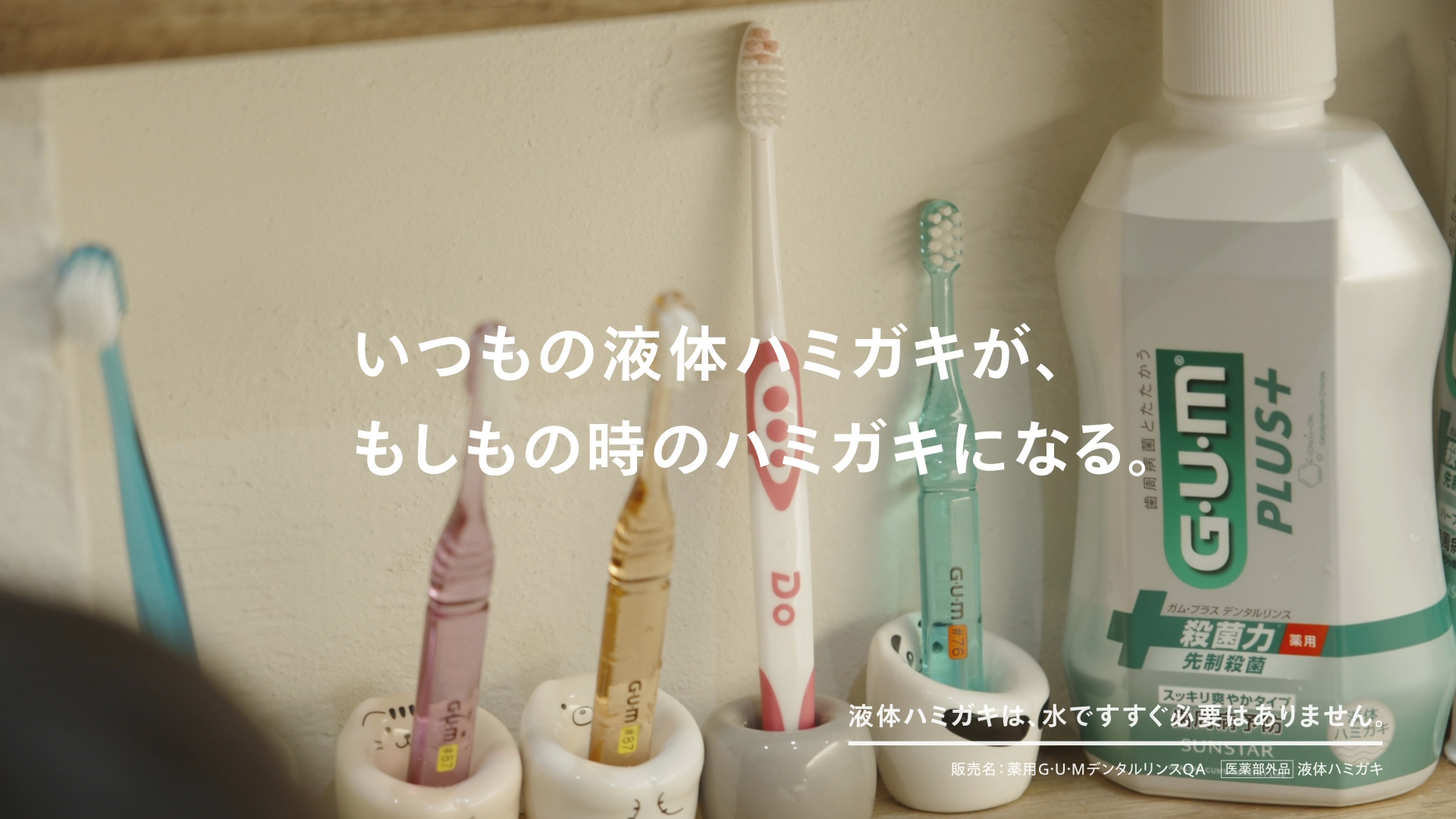 いつもの液体ハミガキが、もしもの時のハミガキになる。サンスター新企業CM 「防災にオーラルケア 雨ニモマケズ」篇 2025年1月2日(木)より全国オンエア開始