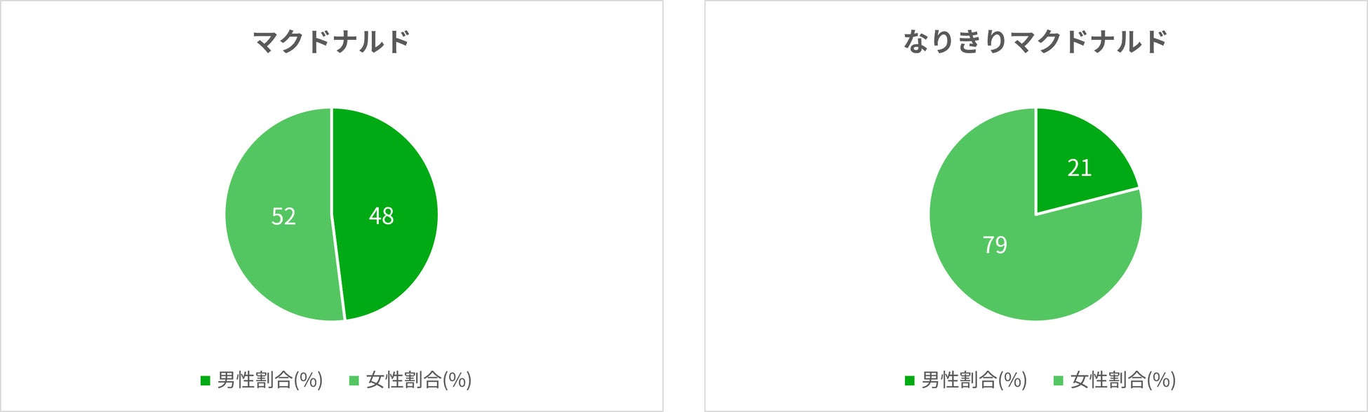検索の男女比では、「マクドナルド」の検索が男女ほぼ半々なのに対し、「なりきりマクドナルド」の検索は女性が8割近くを占めています。