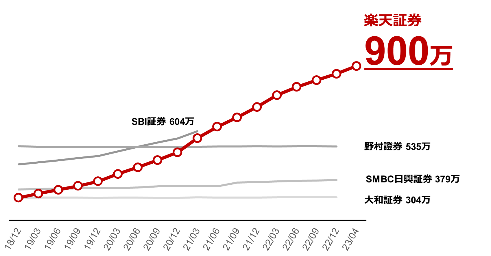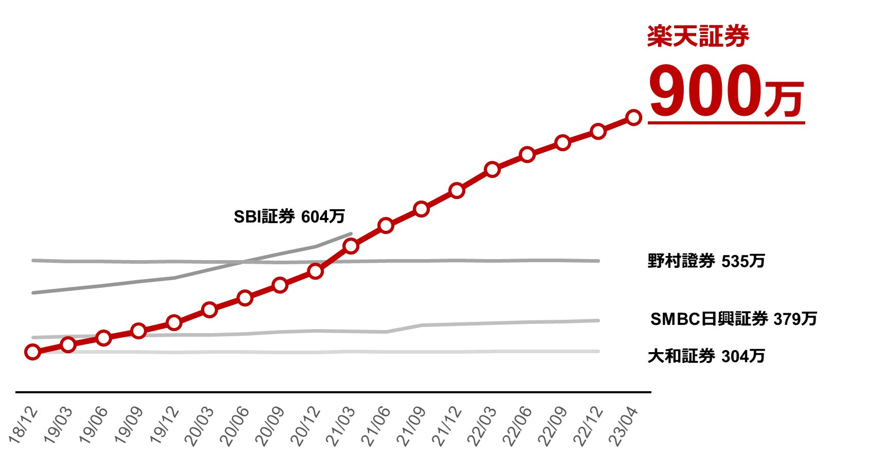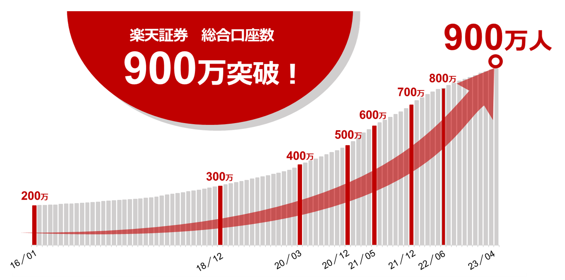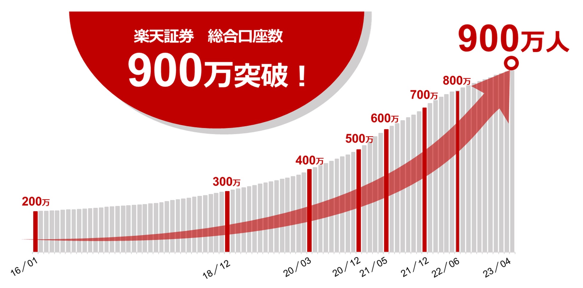 楽天証券、証券単体で国内最多!証券総合口座数 900万口座達成のお知らせ