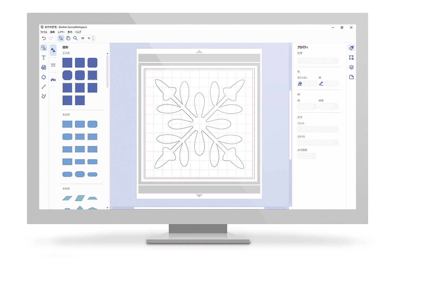 無料PCアプリ「CanvasWorkspace(キャンバスワークスペース)」で、300点以上のカットデータを提供しているほか、より細かなカットデータの作成が行える。カットデータは無線LANで本体に転送できるため、カット作業の場所を選ばない。
