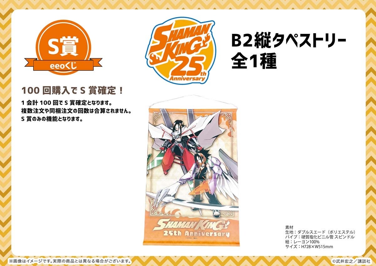 2023年6月に連載25周年を迎えた『SHAMAN KING』より、オンラインくじ「eeoくじ」が7月24日~8月25日の期間限定でeeo Store(通販)にて販売されます。