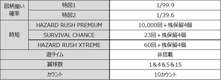 アムテックス社が販売する同シリーズには、「Pバイオハザード RE:2」「Pバイオハザード RE:2 LTver.」の2機種が既存しますが、甘デジタイプでの販売は「Pバイオハザード RE:2 ごらくバージョン」のみとなっております。ダイナムグループでしか遊ぶことができない特別な1台となっておりますので、ぜひお近くに店舗にてお楽しみください。