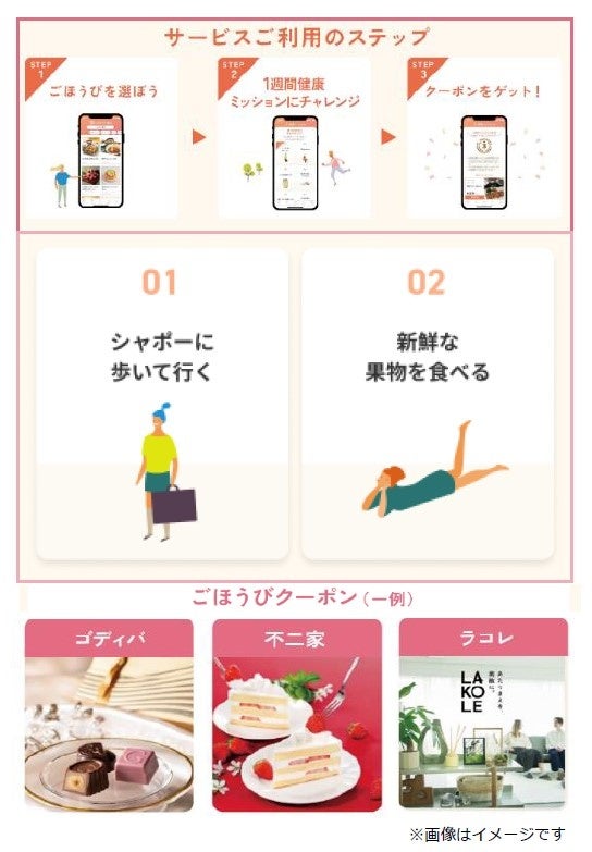 「シャポウェル」は、自身の健康課題に合わせてカスタマイズされた健康ミッションをクリアすることで、シャポー本八幡のショップで使えるクーポンが毎週最大で300円分もらえるサービスです。