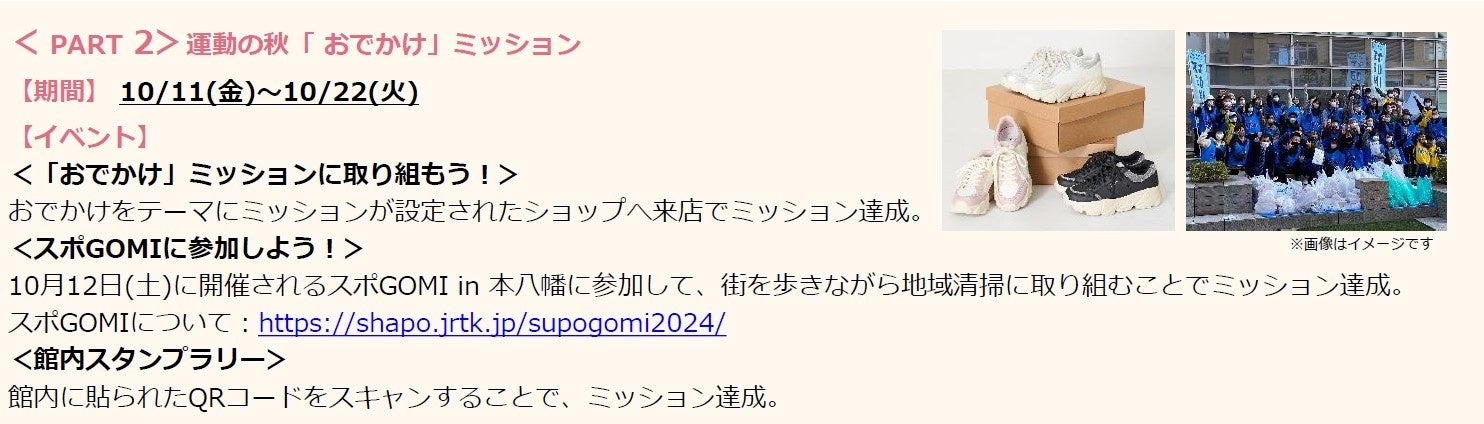 期間中、シャポー本八幡で実施するイベントやショップとコラボレーションした、特別ミッションを実施し、通常のクーポンに加えて、お買い物券がもらえるイベントを実施します。