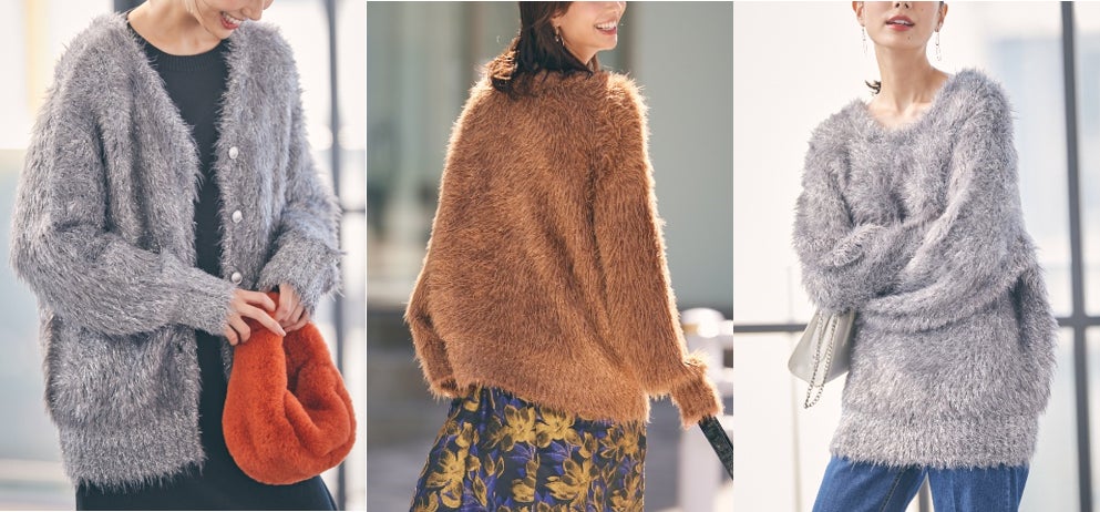 新登場のコラボ商品は、トレンドのふわふわとした素材感とキラキラのラメ感が一気に楽しめる2WAYニットカーディガン。上品見えするように、ファーの長さやラメの色にもこだわりました。ヒップ周りがすっぽり隠れるデザインは、パンツやスカートを合わせるだけでおしゃれに決まります。Rananの最新アイテムを取り入れることで、今冬ファッションが洗練されたドラマチックな雰囲気にアップデートします。