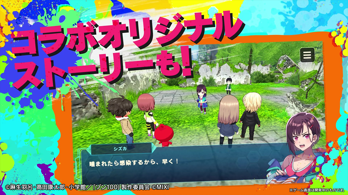 なお、TVアニメ「ゾン100~ゾンビになるまでにしたい100のこと~」が、ゲームアプリとコラボを実施するのは初の取り組みとなります。
