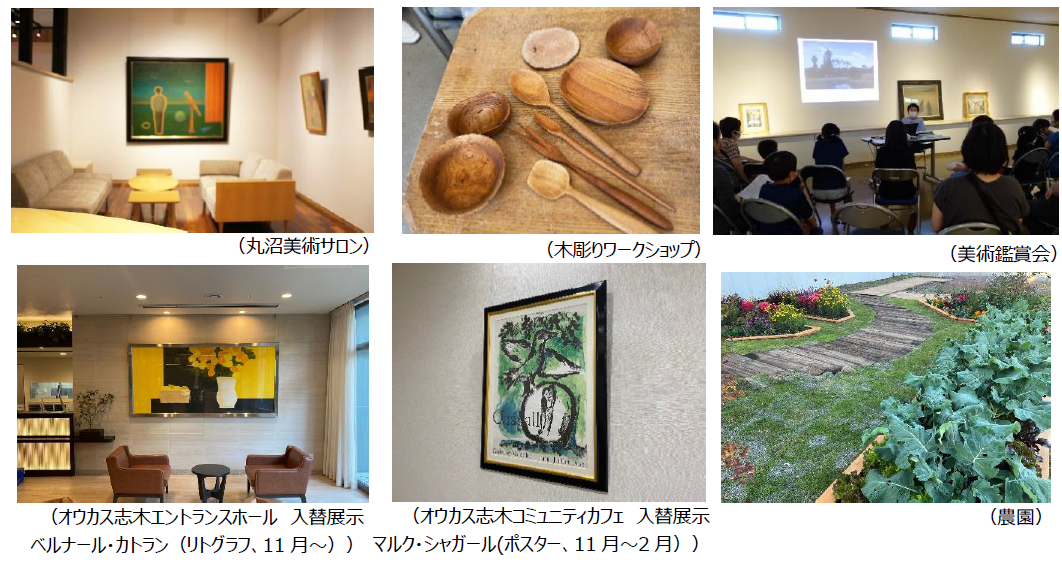 朝霞市を拠点に芸術・文化振興を行っている丸沼芸術の森や地域事業者と連携し、入居者が創造的に日常を過ごせるよう、芸術制作や鑑賞、作農体験を身近に体験できる仕組みを設けています。