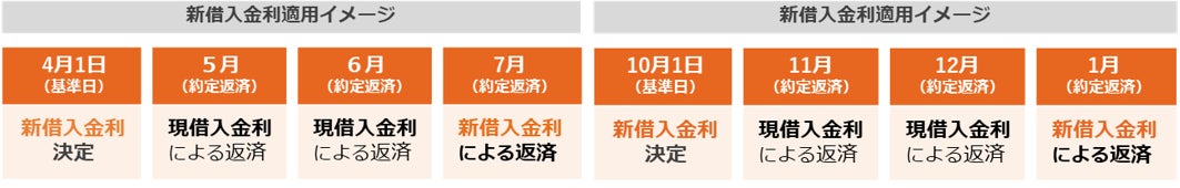 ・ 4月1日基準日で決定する新借入金利は、同年6月の約定返済日の翌日から、10月1日基準日で決定する新借入金利は、同年12月の約定返済日の翌日から適用します。