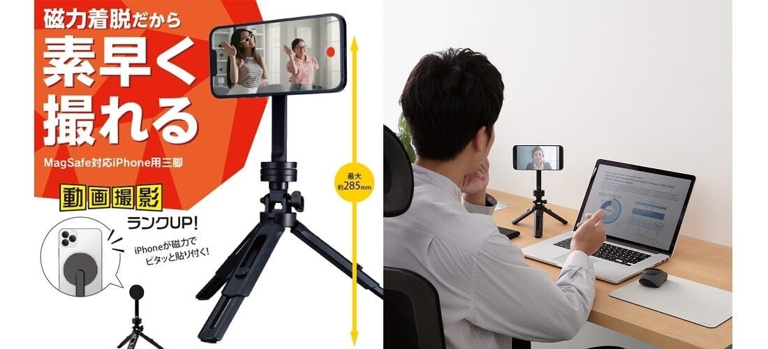 ピタッと貼りつき、すぐ撮影。マグネット着脱で本体固定の手間を削減!MagSafe対応iPhone用三脚を新発売