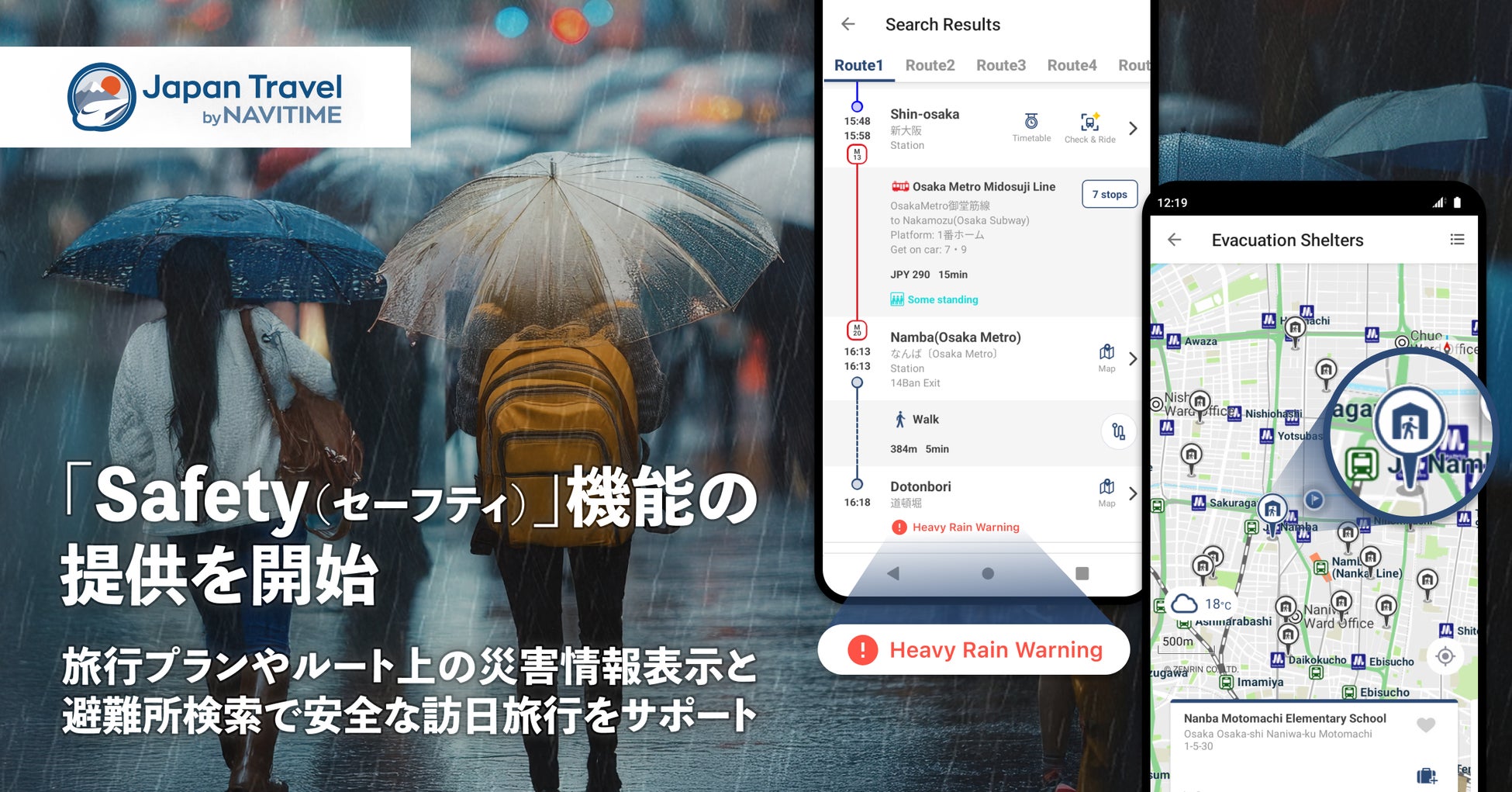 株式会社ナビタイムジャパン(代表取締役社長:大西 啓介、本社:東京都港区)は、2025年3月26日(水)より、訪日外国人観光客向けナビゲーションアプリ『Japan Travel by NAVITIME』にて、災害サポート機能をリニューアルし、「Safety(セーフティ)」機能の提供を開始します。