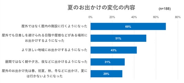 昨今、夏の気温がより高くなってきている傾向にあります。そこで、以前と比べて夏のお出かけの仕方や行き先に変化はあるかを尋ねました。