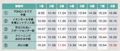 (3)運行ルート JR小川駅~TOHOシネマズ宇城~イオンモール宇城~市立ふれあいスポーツセンター前~クリーニングおのかみや前~JR小川駅