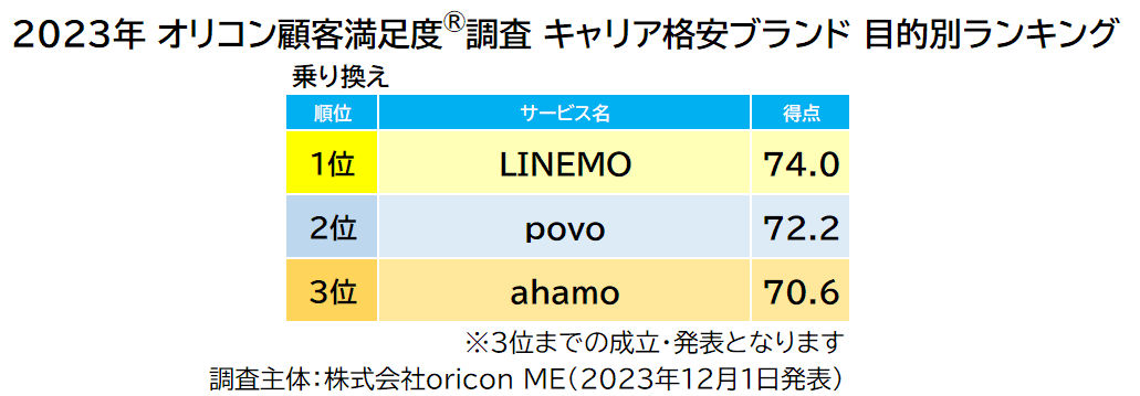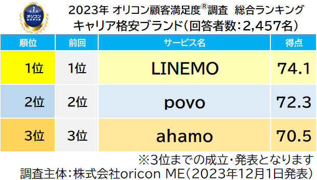 【LINEMO】が2年連続の総合1位