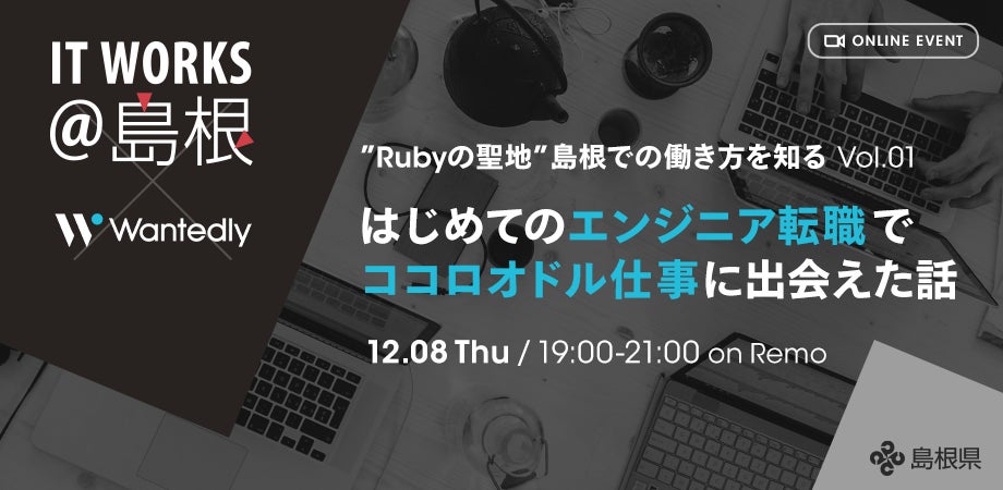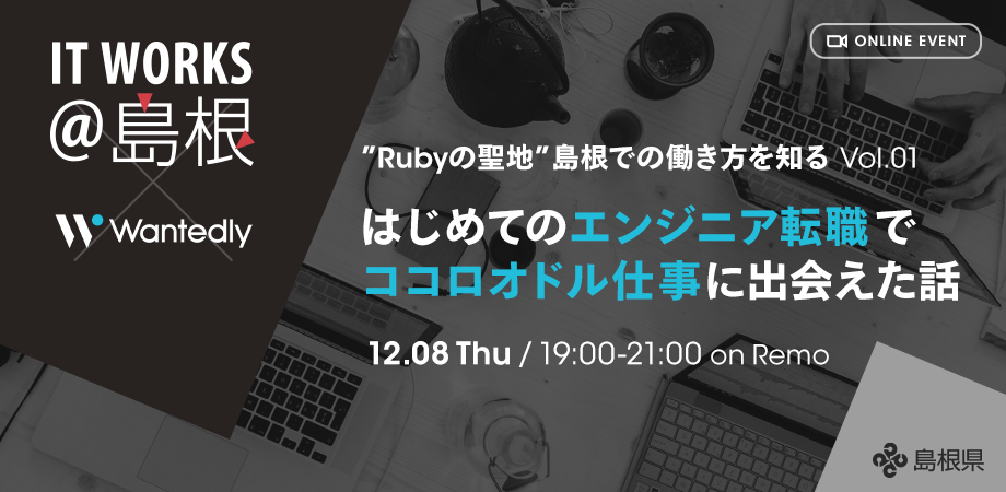 島根県が運営する「IT WORKS@島根」では、本年度よりビジネスSNS「Wantedly」を活用し、島根県におけるエンジニアキャリアに関する情報発信や、エンジニアに向けた地方移住やキャリアをテーマとしたイベントを展開します。