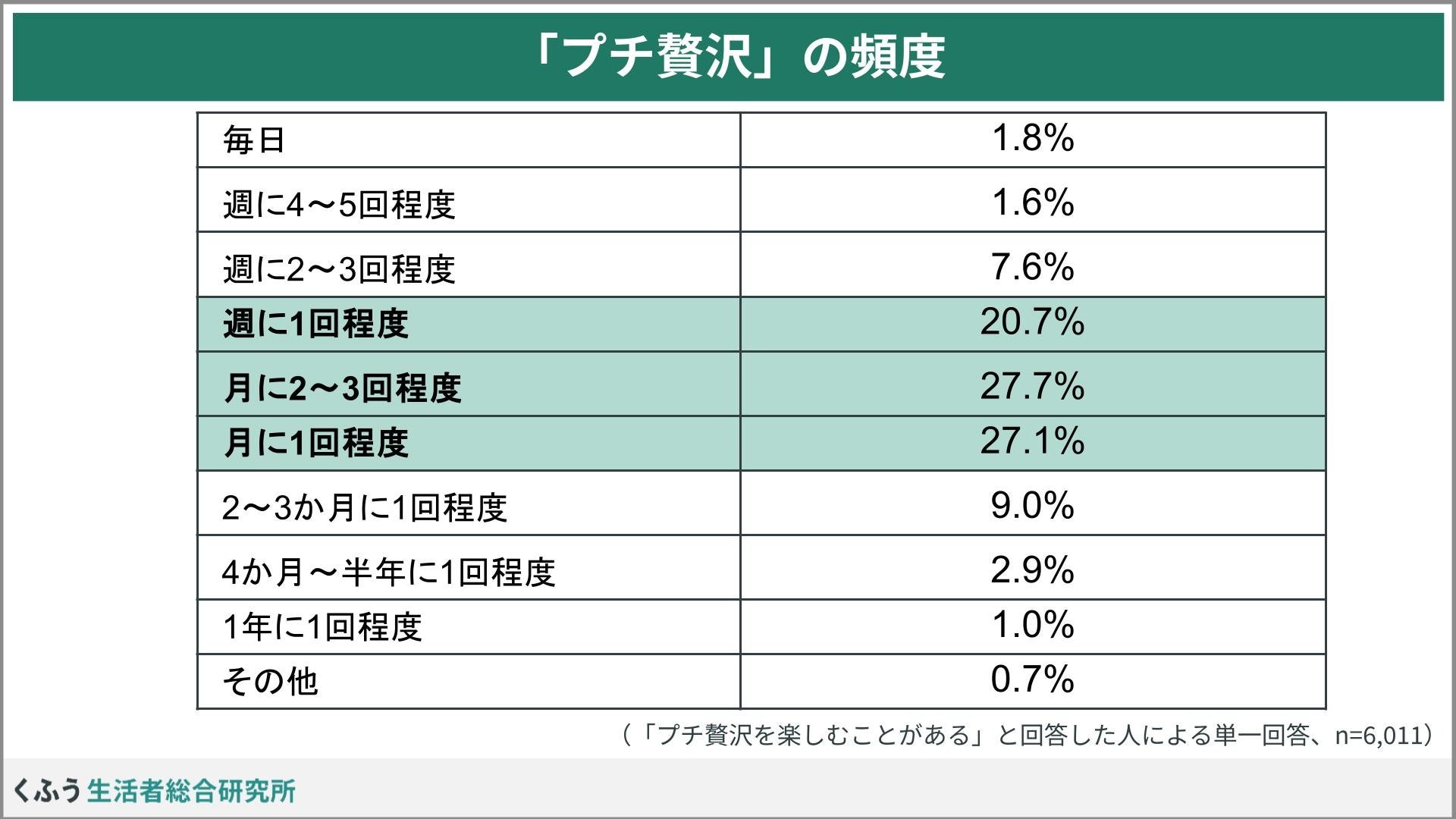 「プチ贅沢」の頻度は「週1回~月1回程度」が7割以上