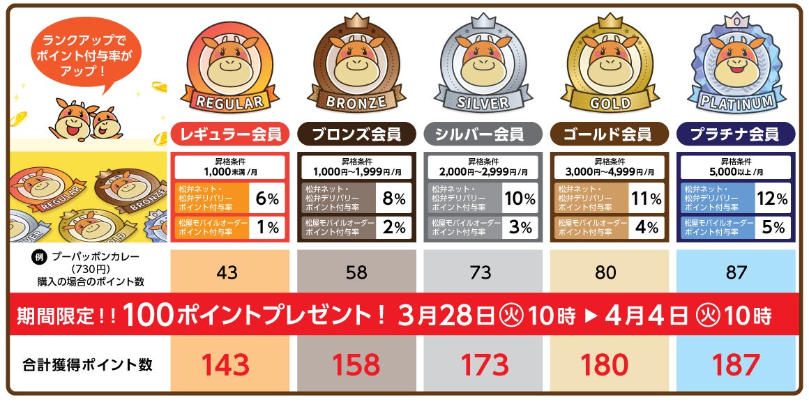 ※松屋モバイルオーダーは「100ポイントプレゼント」対象外です。