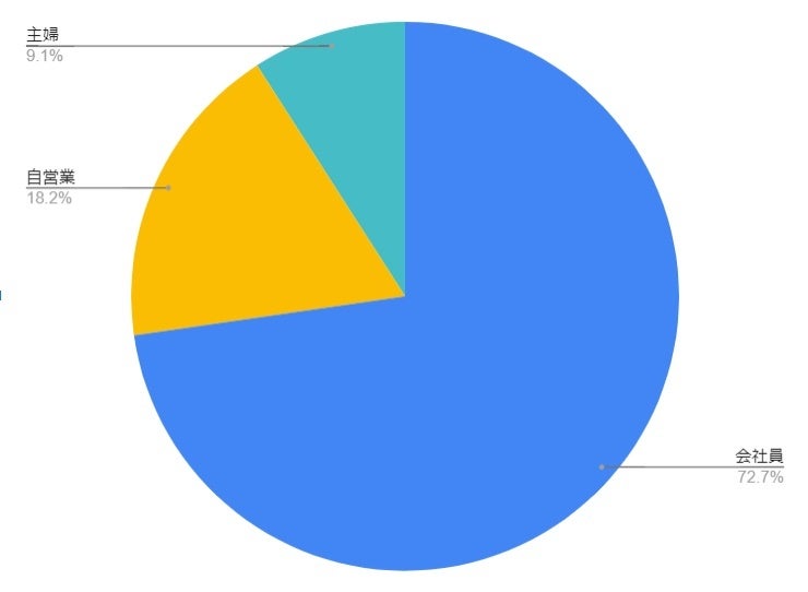 会社員の方が7割以上と大多数ではありますが、