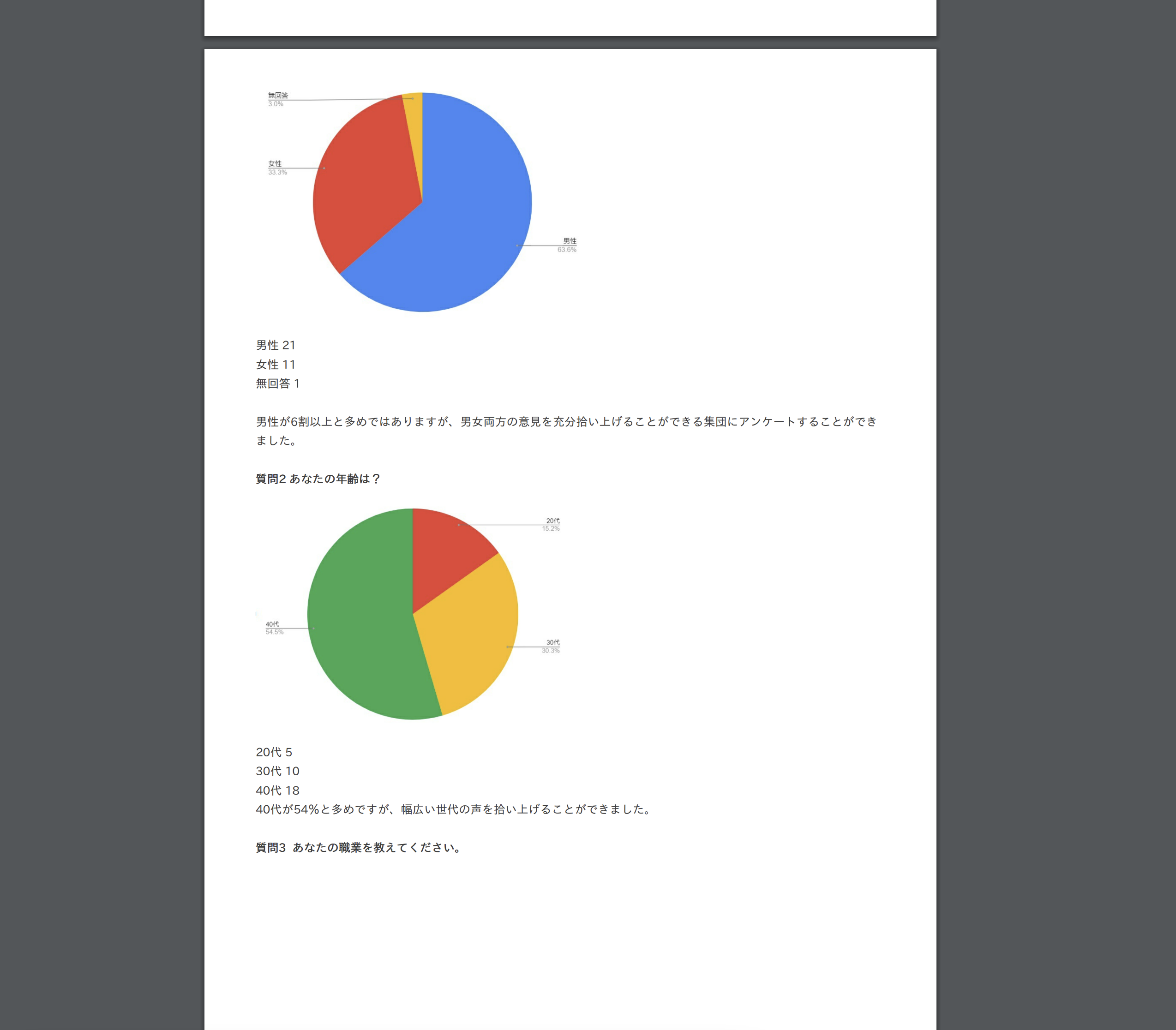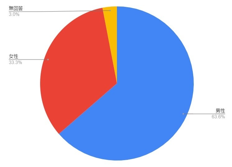 男性が6割以上と多めではありますが、男女両方の意見を充分拾い上げることができる集団にアンケートすることができました。