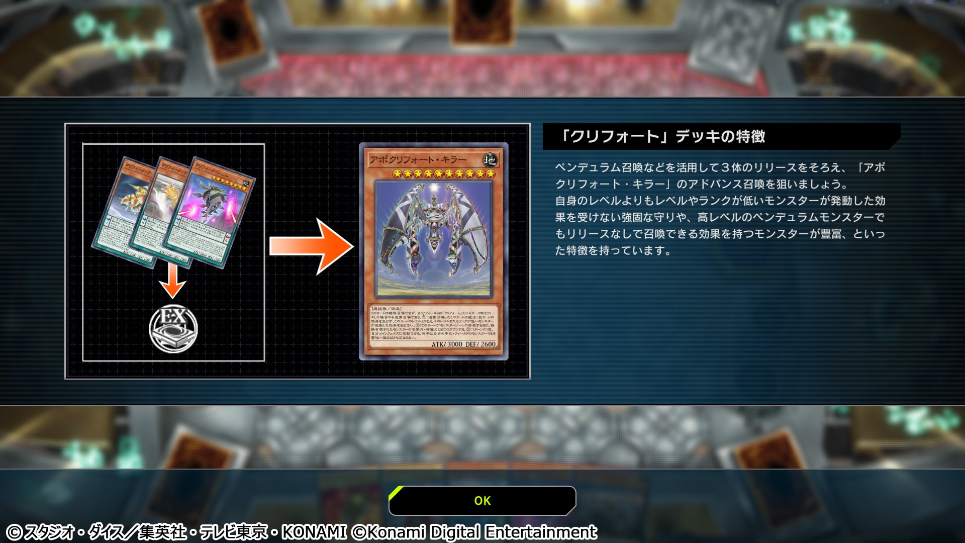 また、遊戯王OCG/TCGのカードを題材としたストーリーを複数お楽しみ頂ける「ソロモード」や「ソロモード」内で遊びながらデュエルを学べる「チュートリアル機能」、「カードデータベース」との連携で世界中のデュエリストの「デッキレシピ」を確認・コピーできる機能、所持しているカードを分解して新たなカードを生成できる「カードクラフト機能」なども搭載しており、遊戯王カードゲームをデジタルで存分に楽しむことが可能です。