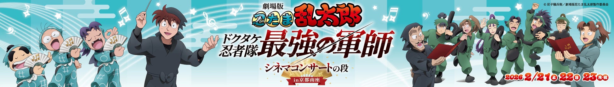 松竹株式会社は、「劇場版 忍たま乱太郎 ドクタケ忍者隊最強の軍師 シネマコンサートの段 in京都南座」 を、2026年2月21日(土)、22日(日)、23日(月・祝)に開催いたします。