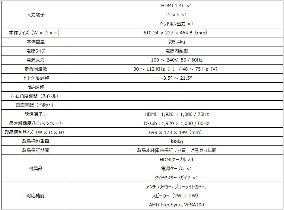 【リフレッシュレート75Hz / ノングレア(非光沢)】
