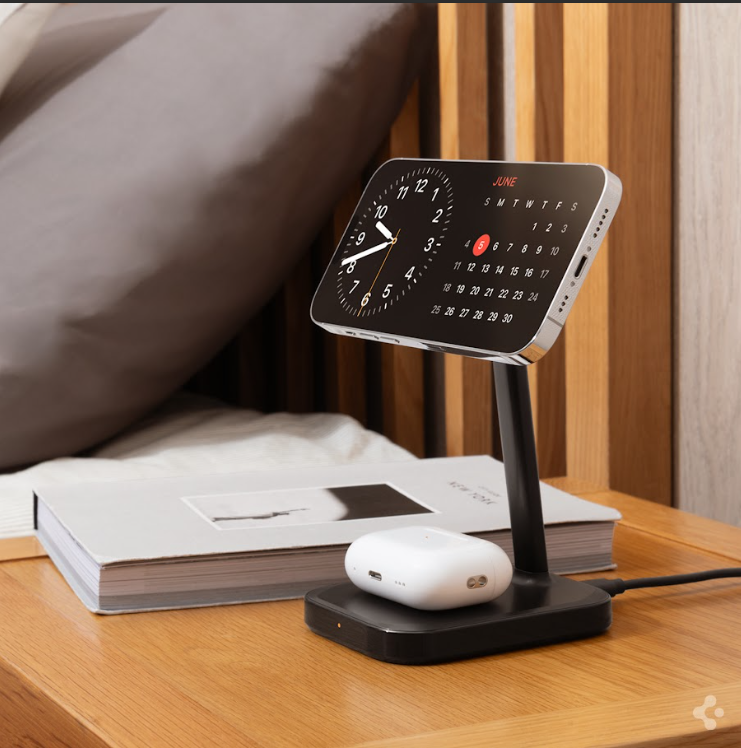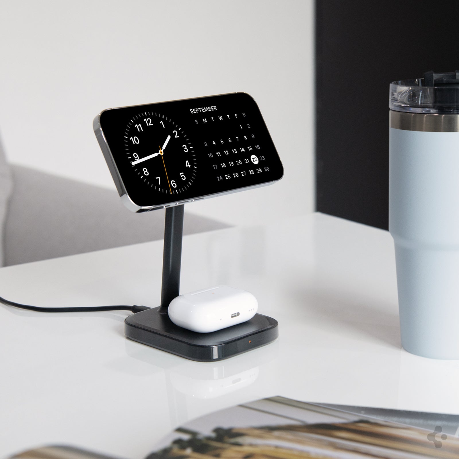 7.5Wのスタンドと5Wの充電パッドを搭載し、iPhoneとAirPodsを同時に充電できるワイヤレス充電器です。