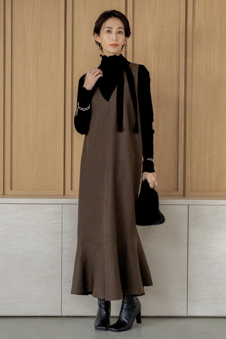 1枚でコーディネートが完成!ふんわり起毛のニットワンピが主役