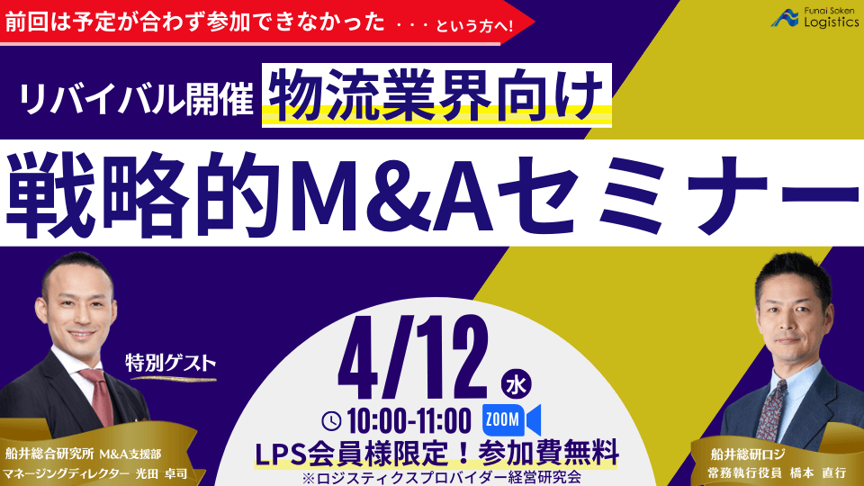 【物流業界向け】戦略的M&Aセミナーの見逃し配信を4/12(水)にオンライン開催|物流コンサルの船井総研ロジ