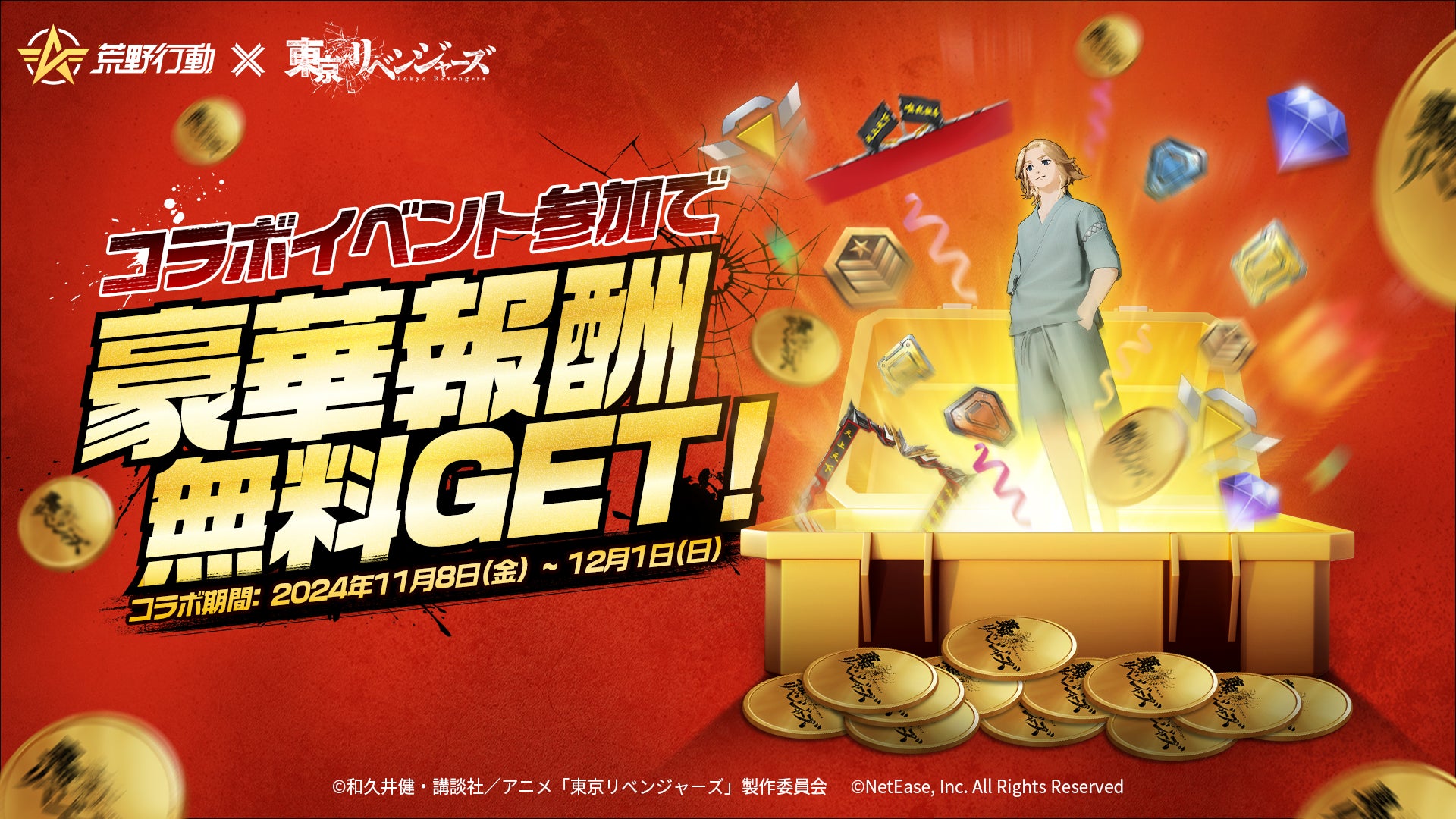NetEase Gamesが開発・運営する大人気バトルロワイヤルゲーム『荒野行動』にて、2024年11月8日から12月1日の期間中、TVアニメ『東京リベンジャーズ』とのコラボイベント第3弾を開催いたします。