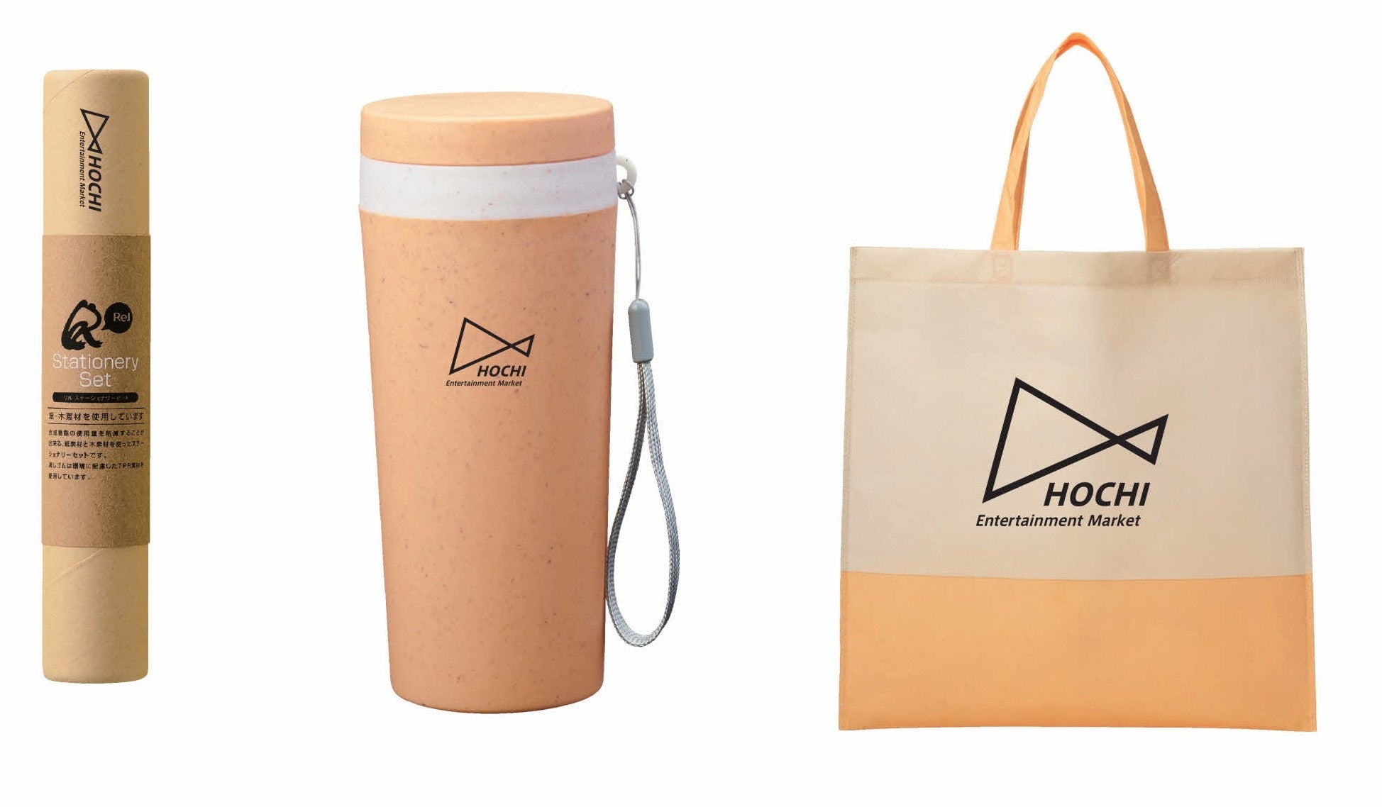 リニューアル記念として、2,000円(税込)以上お買い上げのお客様には、「報知エンターテインメントマーケット」オリジナルエコグッズ(ステーショナリーセット、タンブラー、エコバッグからお好きなもの1つ)をプレゼントします。