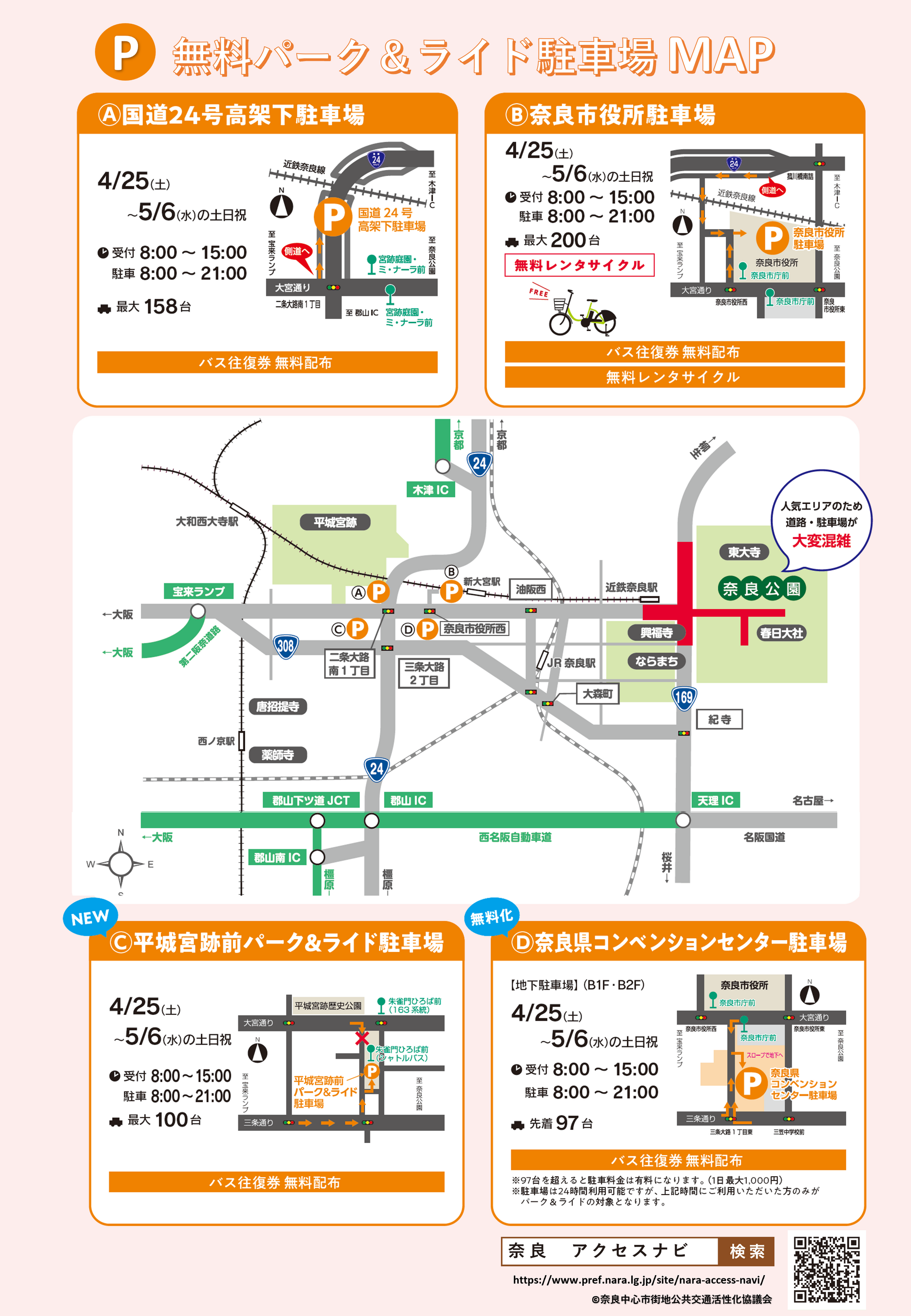 あわせて、今回新たに「奈良県コンベンションセンター駐車場」を無料化し、