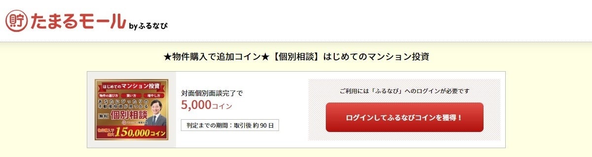 物件購入するとふるなびコインが150,000円相当追加で貰える!「たまるモール by ふるなび」にて『【個別相談】はじめてのマンション投資』が掲載スタート!