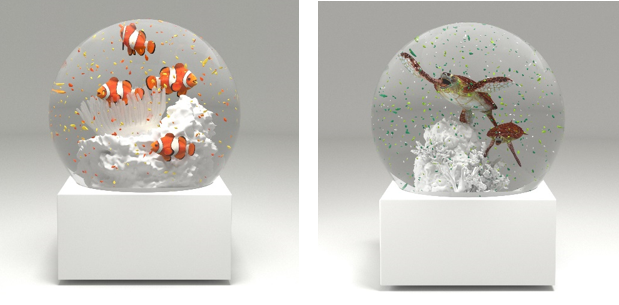 - 第二部:マイクロプラスチックが舞うスノードーム『Microplastic Globe(スノードームになった未来の海)』