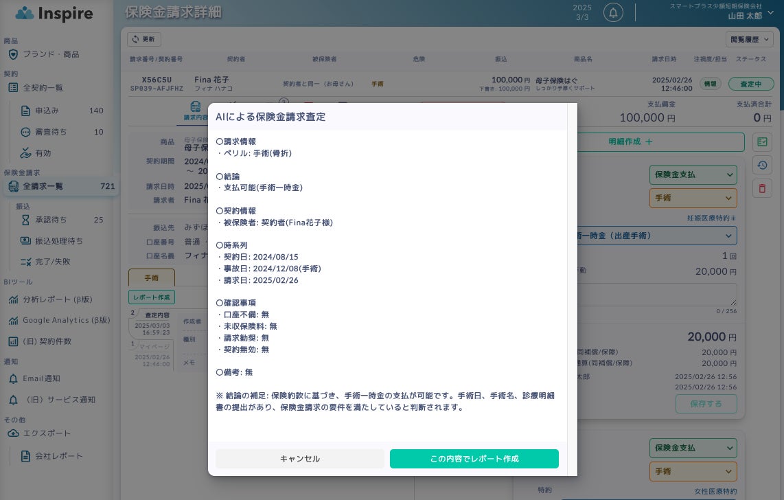 次世代金融インフラの提供を通して組込型金融を実現するFinatextグループの株式会社Finatext(本社:東京都千代田区、代表取締役CEO:木下 あかね、以下「Finatext」)は、SaaS型デジタル保険システム「Inspire(インスパイア)」にて、保険金の査定文書を生成AIで自動生成する機能「Inspire 査定支援LLM」の提供を2025年3月4日(火)から開始しました。本機能は、スマートプラス少額短期保険株式会社(本社:東京都千代田区、代表取締役:小山 宏人、以下「スマートプラスSSI」)の支払査定業務で導入されています。