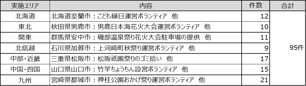 当社では、地域伝統行事を守り、地域催事を支援するため、花火大会や夏祭りなどイベントの準備や運営、清掃活動など、様々なボランティア活動に参加し地域の皆様と交流を深めています。