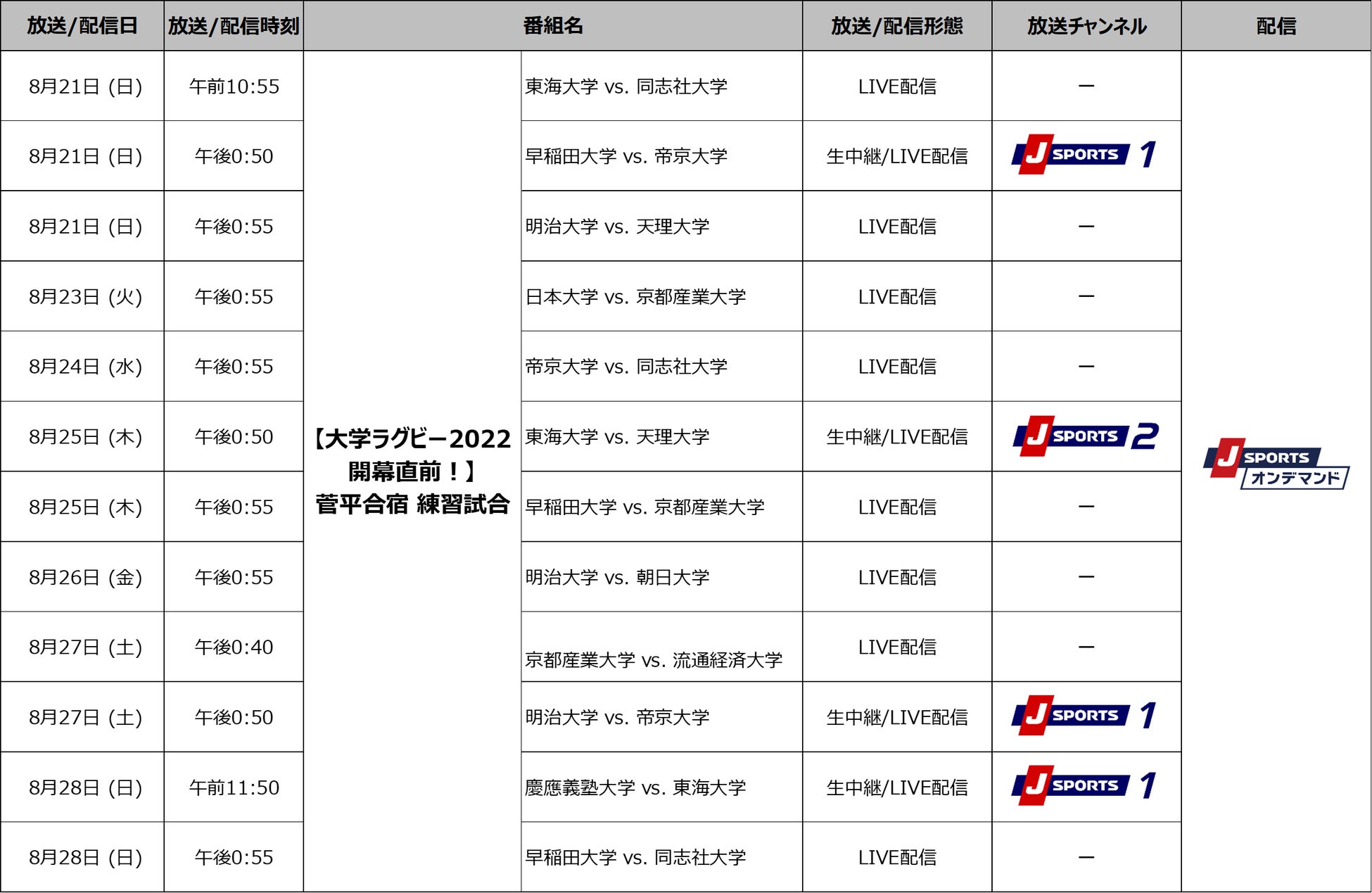 【大学ラグビー2022開幕直前!】菅平合宿 練習試合 8/21(日)~28(日) J SPORTSオンデマンドで計12試合LIVE配信!注目4試合は実況解説付きで放送・配信!