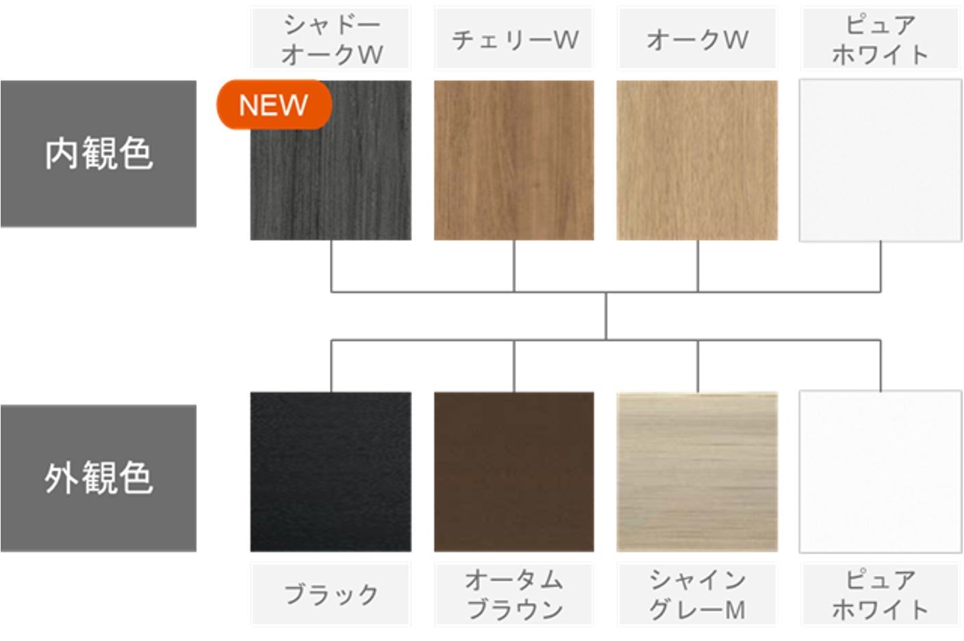 サッシ内観カラートレンドのブラック色から派生させたダーク色の新木目色「シャドーオークW」も発売