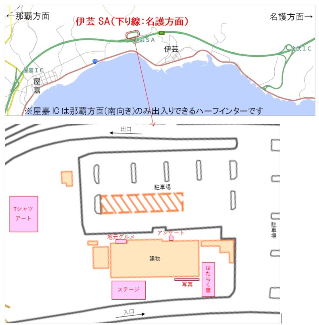 伊芸SA(下り線:名護方面) 伊芸SA(上り線:那覇方面)