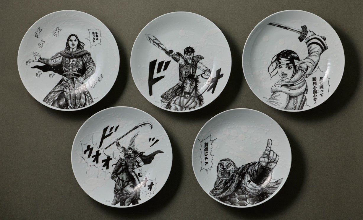 「受け継がれる火」の象徴として、佐賀県が誇る伝統工芸「有田焼」と『キングダム』のコラボ作品を展示します。人間国宝である故・井上萬二氏の孫であり、その技を受け継いだ井上萬二窯三代目の井上祐希氏が制作した、本コラボオリジナルの大皿作品です。有田焼特有の白磁と『キングダム』のキャラクターが織りなす迫力ある作品をご覧いただけます。