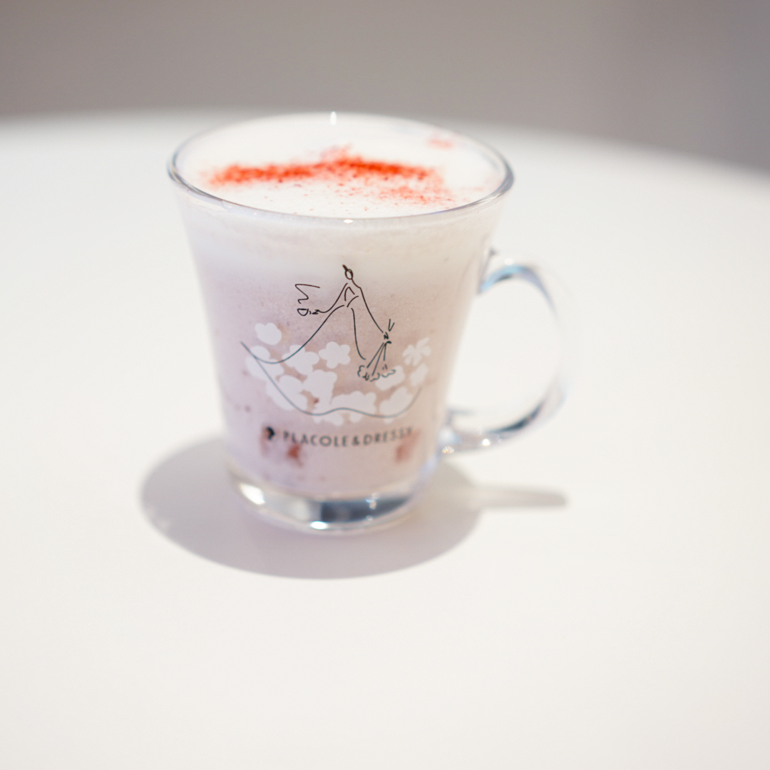 こだわりの果肉入りフルーツソースを使用したいちごみるく。ホットミルクにすることでよりいちごの甘みを感じることができ、濃厚な甘みで心も体も温まりながらいちごを堪能いただけます。