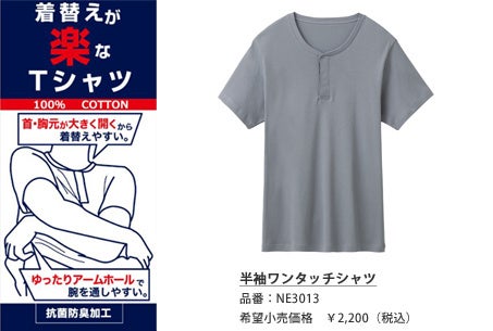 腕が上がりづらくて、肌着の脱ぎ着を苦痛に感じる方のために開発。ラクに着替えができて、見た目もカジュアルで着やすい「着替えが楽なTシャツ」発売