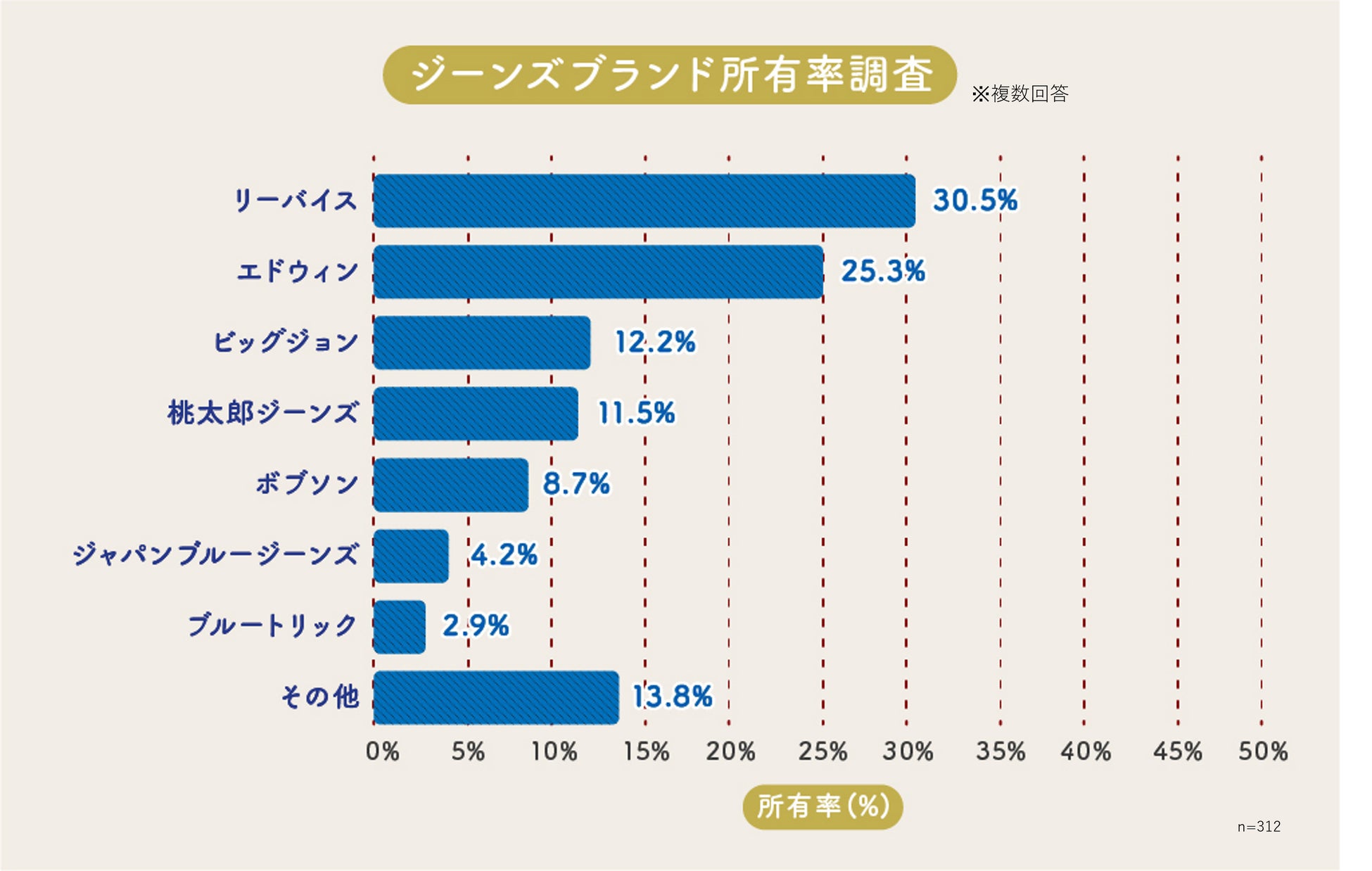 岡山県民の所有ジーンズは王道ブランドが上位を占めるものの、岡山生まれのブランドも奮闘!